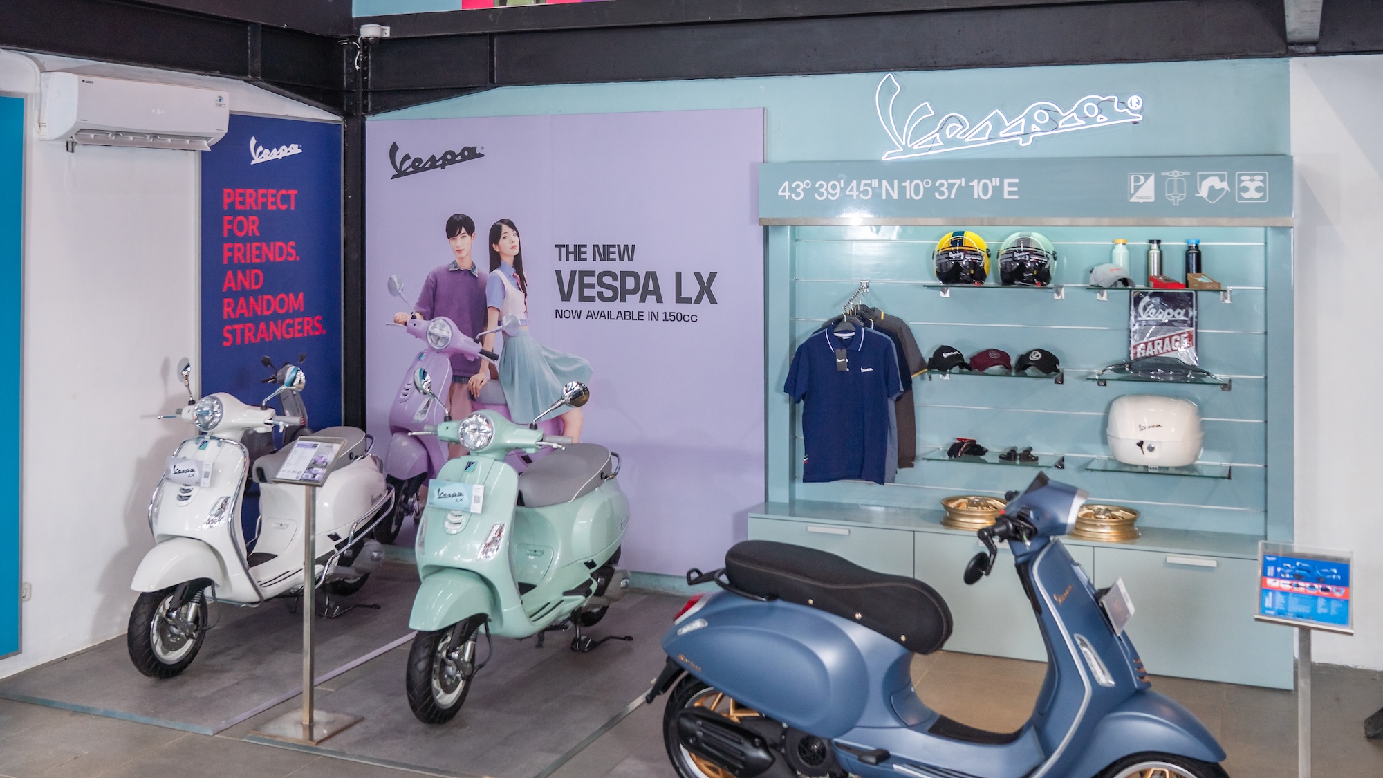 Tak ketinggalan, Motoplex Piaggio dan Vespa Bintaro juga dilengkapi dengan area khusus aksesoris dan merchandise orisinal dari Piaggio Group. Ragam pilihannya bervariasi, mulai dari fly screen, side bar, front dan rear carrier, hingga merchandise, apparel, dan helm dengan berbagai warna dan desain, sehingga memungkinkan setiap pengendara untuk mempersonalisasi skuter mereka sesuai karakter masing-masing.